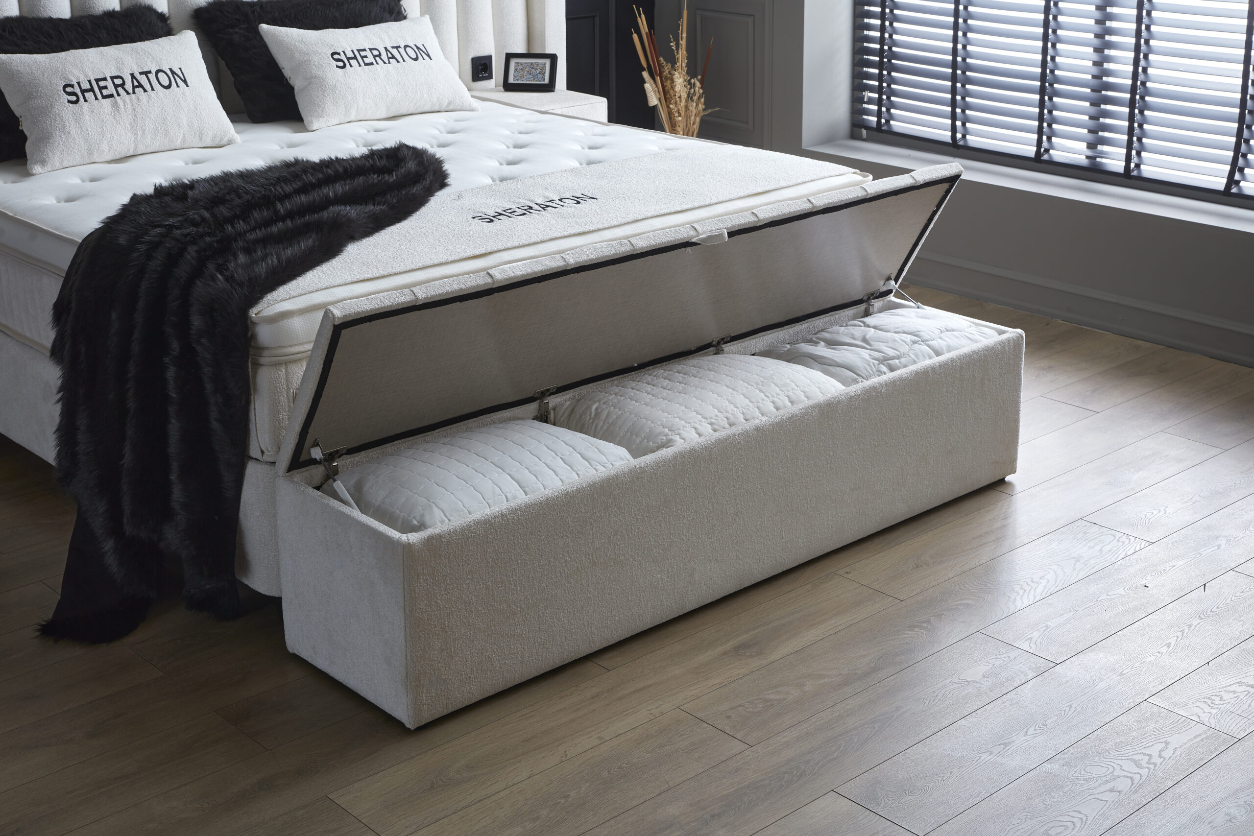 Voodil on suur pesukast, kuhu saad mugavalt hoiustada voodipesu ja muud vajalikku. Tõstemehhanism töötab vaikselt ja sujuvalt, spetsiaalsed silikoonist käepidemed teevad kasutamise turvaliseks ja lihtsaks.