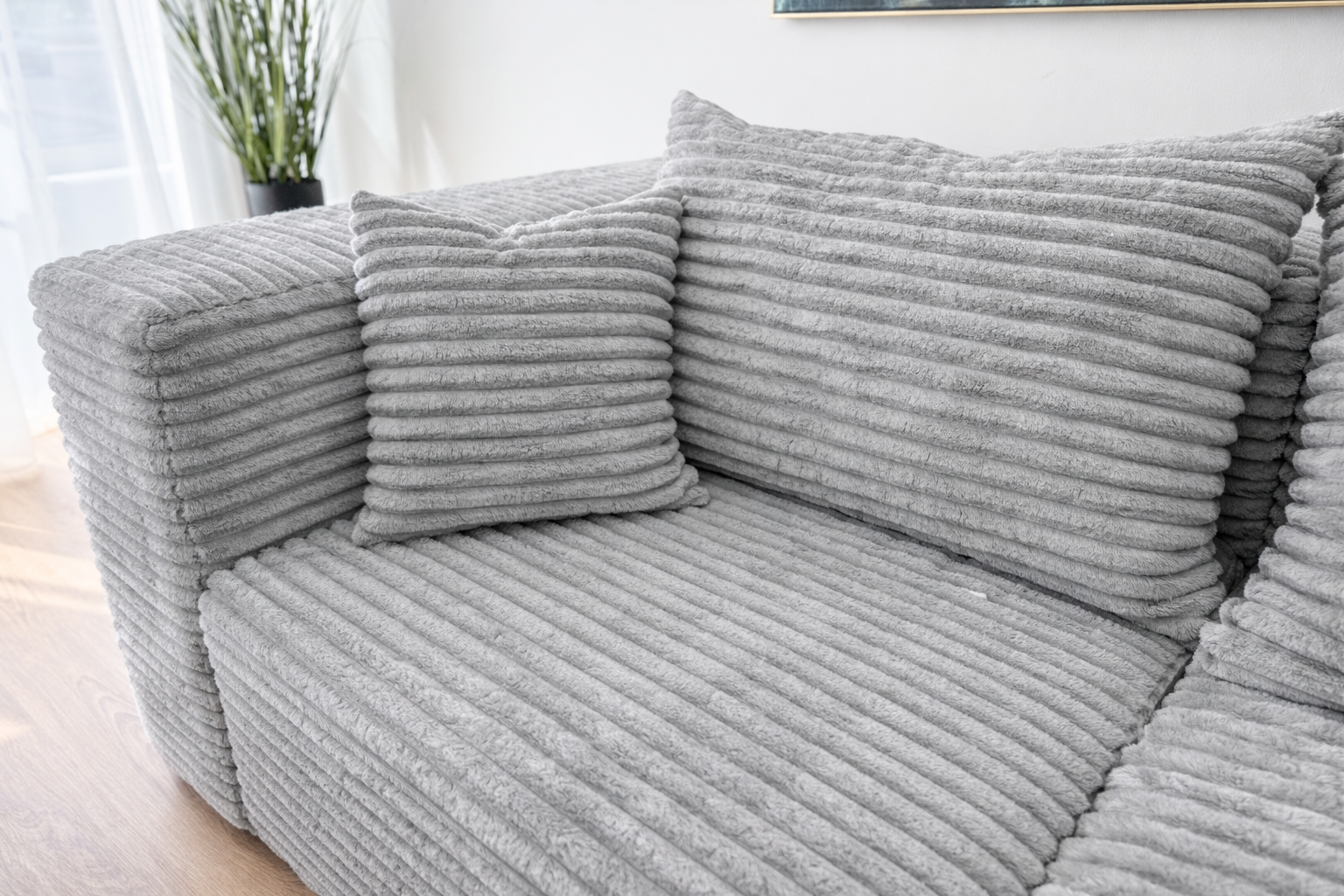 Diivan on valmistatud kvaliteetsest sametisest kangast, mis on pehme, luksuslik ja väga vastupidav igapäevasele kasutusele. Istumisosas kasutatav HR35 poroloon koos zig-zag vedrudega pakub mugavust ja toetust mitmeteks aastateks. Seljatoe patjadel on kasutatud silikoonpallikesi, mis teevad selle pehmeks ja pikalt kestvaks.